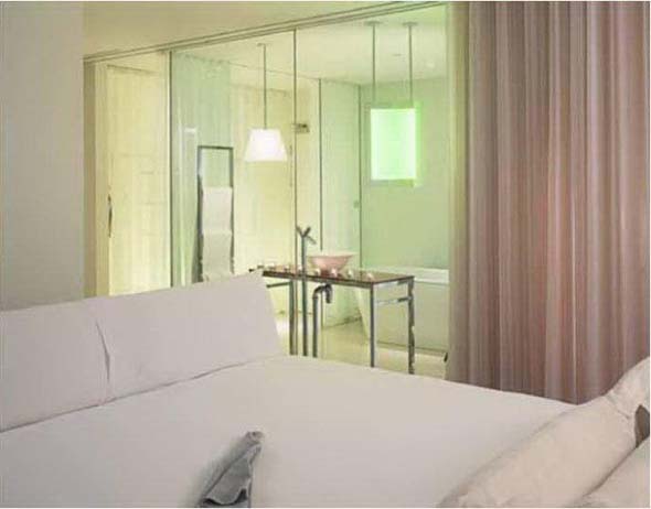 图3 Sanderson酒店客房。浴室仅被几层帘幕隔开,没有隔墙