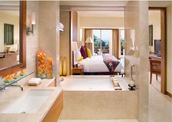 图11 从浴室能望到阳台外的客房——很多度假酒店的设计手法