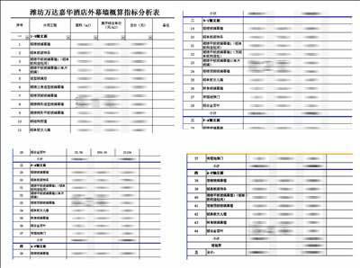 图 5幕墙成本分项测算表,细化到每个立面部位,便于成本比重分析