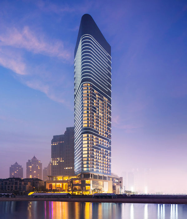 大连君悦酒店位于中国东北部沿海城市大连,坐落在正对着黄海和毗邻星海广场大型公共公园,于华润•星海湾壹号项目内,是以超五星级酒店为 核心,集商业居住功能于一体的地标性都市综合体的核心组成部分。 君悦酒店190米高的塔楼中包括了376间客房,约60套酒店式公寓、标志性屋顶餐厅,以及大型宴会、商务会议、餐饮、健身和水疗等服务设施。尤其是位于 一楼的590平方米大宴会厅设计人性化,汽车可直接开入。