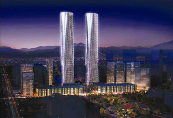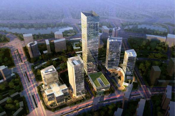高度300 米,总建筑面积43 万m2,总投资约30亿元。其建筑造型寓意“开天辟地、腾飞崛起”,构建城景交融、物景交融、人景交融的标志性建筑群。