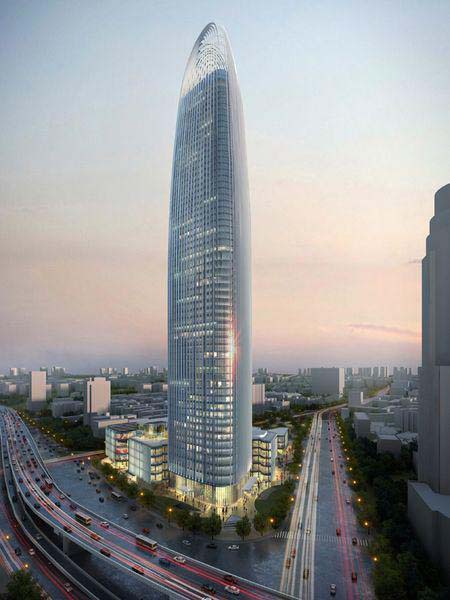 高度300 米,济南第一高楼,总建筑面积约20 万m2,融合中国传统建筑元素与现代商业服务功能,将打造成为具有鲜明历史文化特色的现代化地标性综合体。