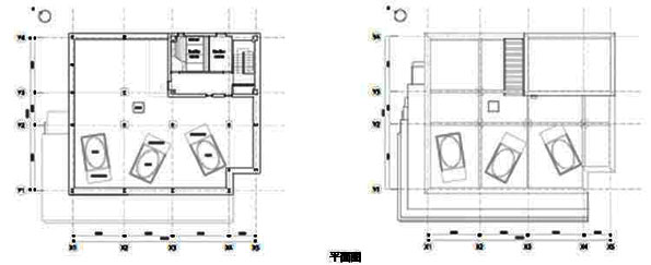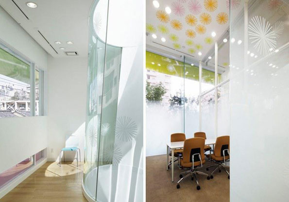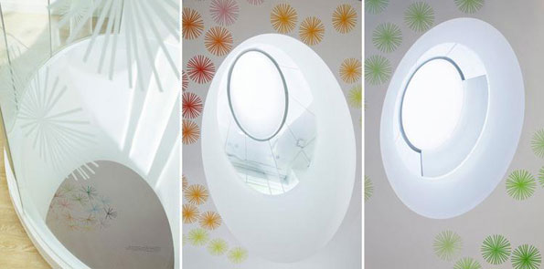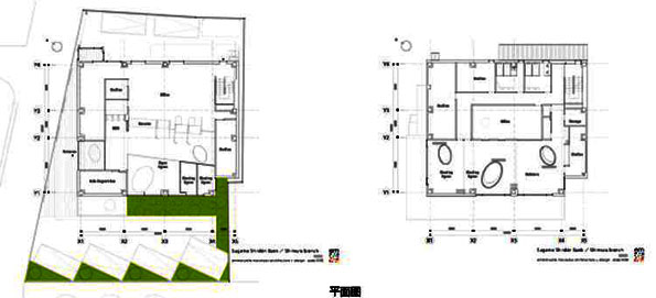 自动提款机、窗口、咨询台及一个设置了14种不同颜色椅子的开放空间位于一层。
