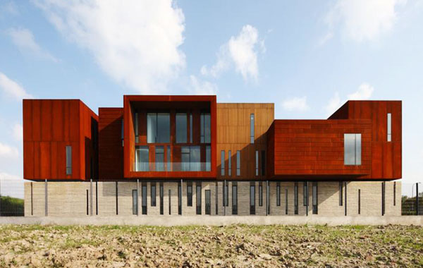 这是嘉定新城区燃气公司自用的管理办公楼。建筑基地西临嘉定新城区最主要的一条南北干道,南侧和东侧是两块尚未建设的荒地,北侧则是一条小河,河对岸的马路后面是一块绿地。建筑的形态完全是对基地环境的回应,建筑功能里特殊的一些房间如会议室等以特别的形态从建筑方形的体量中游离出来,呈现朝向北侧风景的态势,而这些房间的日照则通过游离之后所出现的小小的内庭院间隙来获取,这些小间隙同时为这个不大的建筑塑造了一个不同一般的内部环境,建筑内部空间由此产生节奏感。