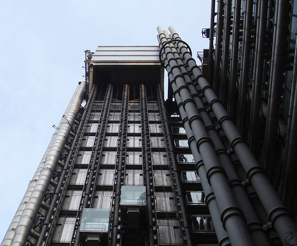 大厦位于伦敦市金融区内,大厦主体为长方形,阶梯状布局。一端高为12层,另一端为6层。中间是很高的大厅,四周为玻璃幕墙;建筑外围有6个塔楼,内置楼梯、电梯及各种管线设备。大厦主体的每层平面没有固定隔断,以便可以灵活使用,大厦的四周及顶部,有许多的结构部分均暴露在建筑外面,远远望去,大厦像是一个复杂的工业建筑。这种做法体现了高度发达的工业化水平所赋予建筑的新形象。也有人认为:这种表现与周围环境及已有的建筑极不协调。