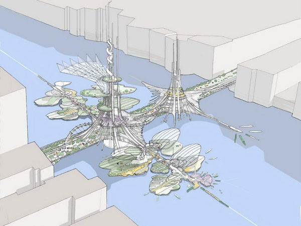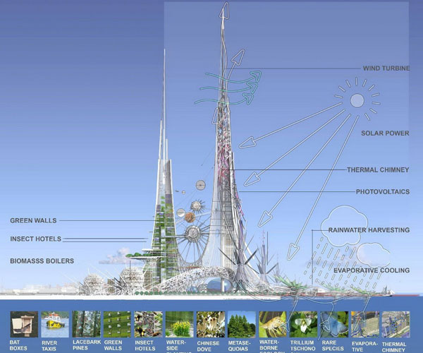 除了大楼本体,Chetwoods建筑事务所还为双子塔引入了轻量级光伏包层、生物动力污染吸收层(biodynamicpollutionabsorbingcoatings)、以及热烟囱(thermalchimneys)等。