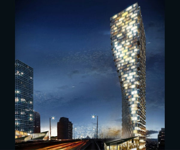 加拿大温哥华一号公馆(Vancouver House)。由世界著名设计师Bjarke Ingells所领导的BIG事务所设计,评委将其描述为一座成功转换城市空间并合理运用上层空间的建筑。建筑从纽约三角大楼汲取灵感,合理利用地形 特点,将建筑设计成为三角地基,以更符合土地特点,大楼延伸到空中的部分进行了大胆的扭曲变形,在兼顾安全的同时增加住宅数量。