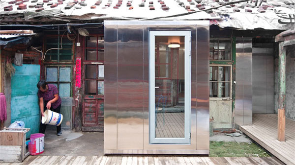 北京胡同里的内盒院。内盒院本质上是“房中房”,通过在老旧四合院中置入预制模块内盒,为生活在老旧四合院中的人们提供符合现代生活质量标准、并且节能高效的居住环境。