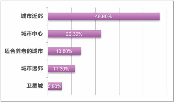 图2 养老机构区位选择调研统计图(数据来源:润土咨询《2012中国城市养老居住模式研究报告》)