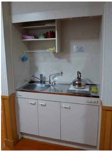 足自己的特殊营养需要。同时一些老人也表示,也可以通过做饭促进与子女的交流。一些老人则表示可以不需要套内小厨房,但宜设一些公用厨房,有微波炉等简单设备方便热饭即可(图1)。图 5 日本老人公寓中的小厨房:满足烧水、热饭菜、煮粥需求 (作者自摄)