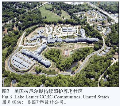 第一,盲目追求“高端”形式,与我国现阶段发展水平不匹配。发达国家步入老龄化社会已有百年以上的历史,其养老设施覆盖体系比较完善。目前看到的国外高端、豪华的养老社区是在经历了很长的发展历程后形成的,并且也仅仅是其养老体系中的一部分。我们应当分析我国当前的老龄化程度等同于发达国家历史上的哪一时期,当时他们的养老社区发展形式是什么特征。通过对比发现,中国当前65岁以上的老年人口比例为8.87%,接近日本1980年代的比例9.1%⑤,与美国20世纪50、60年代相近⑥。日本在1980年代的养老建筑以多人间(四人间或者六人间)为主要居住形式,直到1990年代中后期才向双人间、单人间转变,继而到2000年以后开始全部推行单人间。我们现在建设养老社区也应在一定总量下平衡不同经济状况老人的比例关系,而不应一味追求高端的设施配备、追求房间是单间,否则既造成土地资源的浪费,又增加了运营管理成本。这其实与我国“未富先老”的国情并不相符。 第二,忽略了规划形式上的差别。有的养老社区在规划时直接套用国外的规划形式,虽然有很多优点,但却不一定符合我国国情(图3)。调研发现,中国老年人的居住习惯更加重视房间朝向和节能,他们比较喜欢南向,喜欢阳光和自然通风,重视节约用电,不习惯长时间使用中央空调。这些都与外国老人不同。我国建筑设计规范中的要求与国外也有所区别。如果简单照搬国外的规划形式,就不能适应我国本土化的需要。因此我们应在理解其规划形式的基础上进行创新,从而得到适应我国国情的规划和建筑形式。