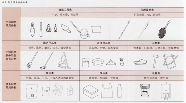 调研发现,阳台中储存的物品大致可分为以下几类(表1)