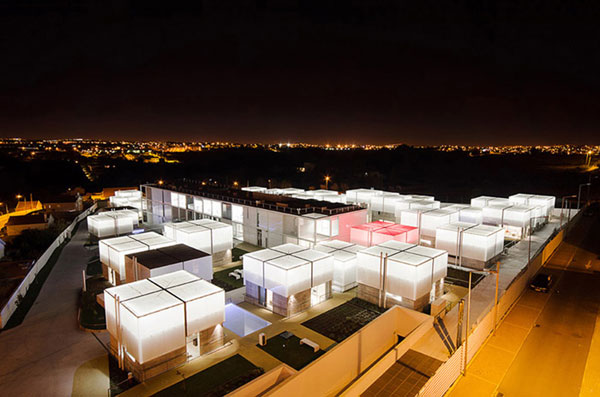 这些屋顶还有别的功能。如遇到紧急情况,住户可以启动警报通知中央大楼的控制台,这时候,盒状屋顶的灯光将从白色变成红色,向控制站发出警报。