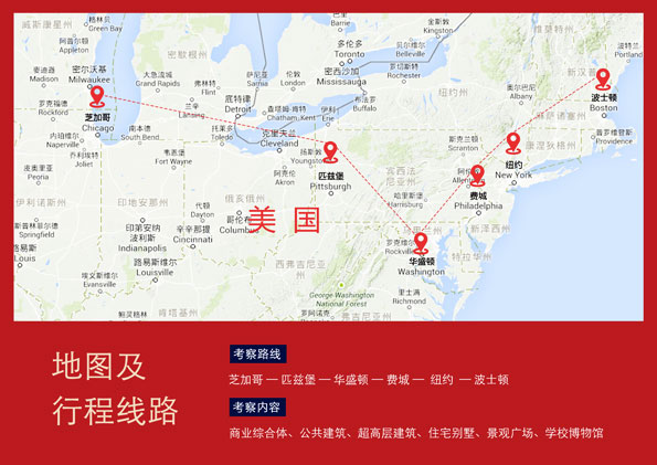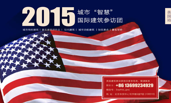 2015年,城市“智慧”国际建筑参访项目带您走进美国,选取芝加哥、匹兹堡、华盛顿、纽约、波士顿五城市沿线,建筑考察为主线,从名师经典到现代名作,新型研究建筑到人文名景建筑,通过知名建筑师的全程讲解,全面解读美国建筑设计理念与人文城市智慧。了解美国建筑,体验美国文化,开阔国际化视野。