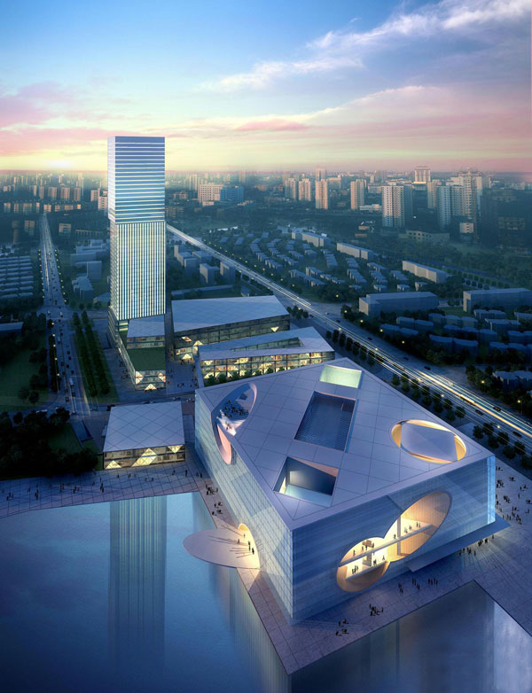遥望剧院,整体呈规则长方体形状,却在每一个灰色幕墙“雕”出了或圆形或心形的镂空圆筒,负责整个工地建设的孙健透露,这正是安藤忠雄“文化万花筒”独具匠心的设计,“这些圆筒、曲线、几何等变换的建筑中,暗藏了很多观众通道,大家拾级而上,犹如进入一个万花筒,走到尽头,就是大剧院最耀眼的舞台”。