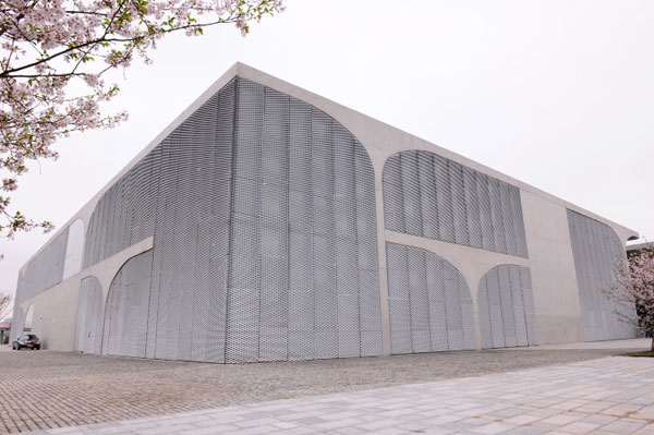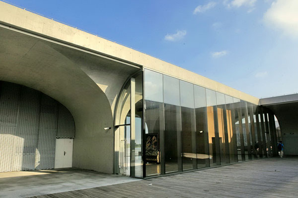地面以上的清水混凝土“伞拱”下的流动展览空间和地下一层传统“白盒子”式的展览空间由一个呈螺旋回转、层层跌落的阶梯空间联接,既原始又现实的空间和古代、近代、现代直到当代艺术的展览陈列,这种并置的张力,呈现出一种具有时间性的展览空间。