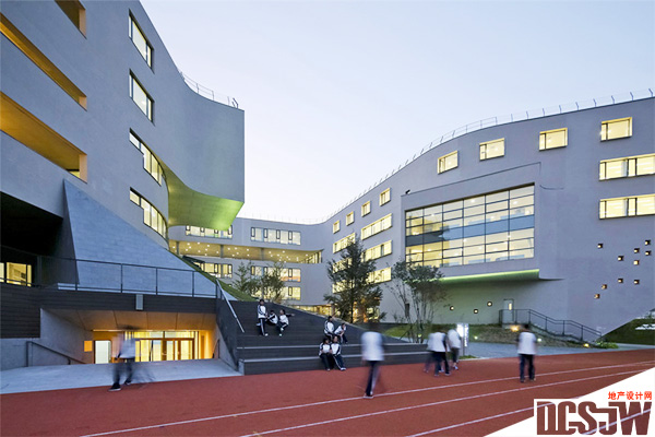创造更多充满自然的开放空间的设计出发点——这是今天中国城市学生所迫切需要的东西,加上场地的空间限制,激发了我们在垂直方向上创建多层地面的设计策略。学校的功能空间被组织成上下两部分,并在其间插入了花园。垂直并置的上部建筑和下部空间,及它们在“中间地带”(架空的夹层)以不同方式相互接触、支撑或连接,这既是营造空间的策略,也象征了这个新学校中正式与非正式教学空间的关系。