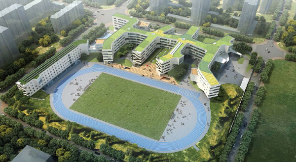 新学校是这个避免了早期单一功能的郊区开发模式、更加健康和可持续的新城计划中重要的一部分,对新近城市化的周边地区的发展起着至关重要的作用。