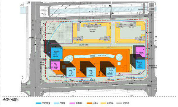 项目规划用地面积为9.7公顷,地上建筑面积53万多平方米。建筑群体分为南北两个区域;北区为住宅区。南区主要为公建区。公建区包括一栋6层购物中心、三栋33层写字楼(产权式酒店),一栋高达185米44层和一栋29层甲级写字楼以及外廊式室外商业街。
